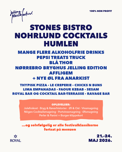 Som noget helt nyt flytter Nohrlund ind i cocktailhanerne på Jelling Musikfestival med læskende drinks i alle regnbuens farver – fra Mango Smash og Nohrlund Spritzer til Espresso Martini og White Russian.
